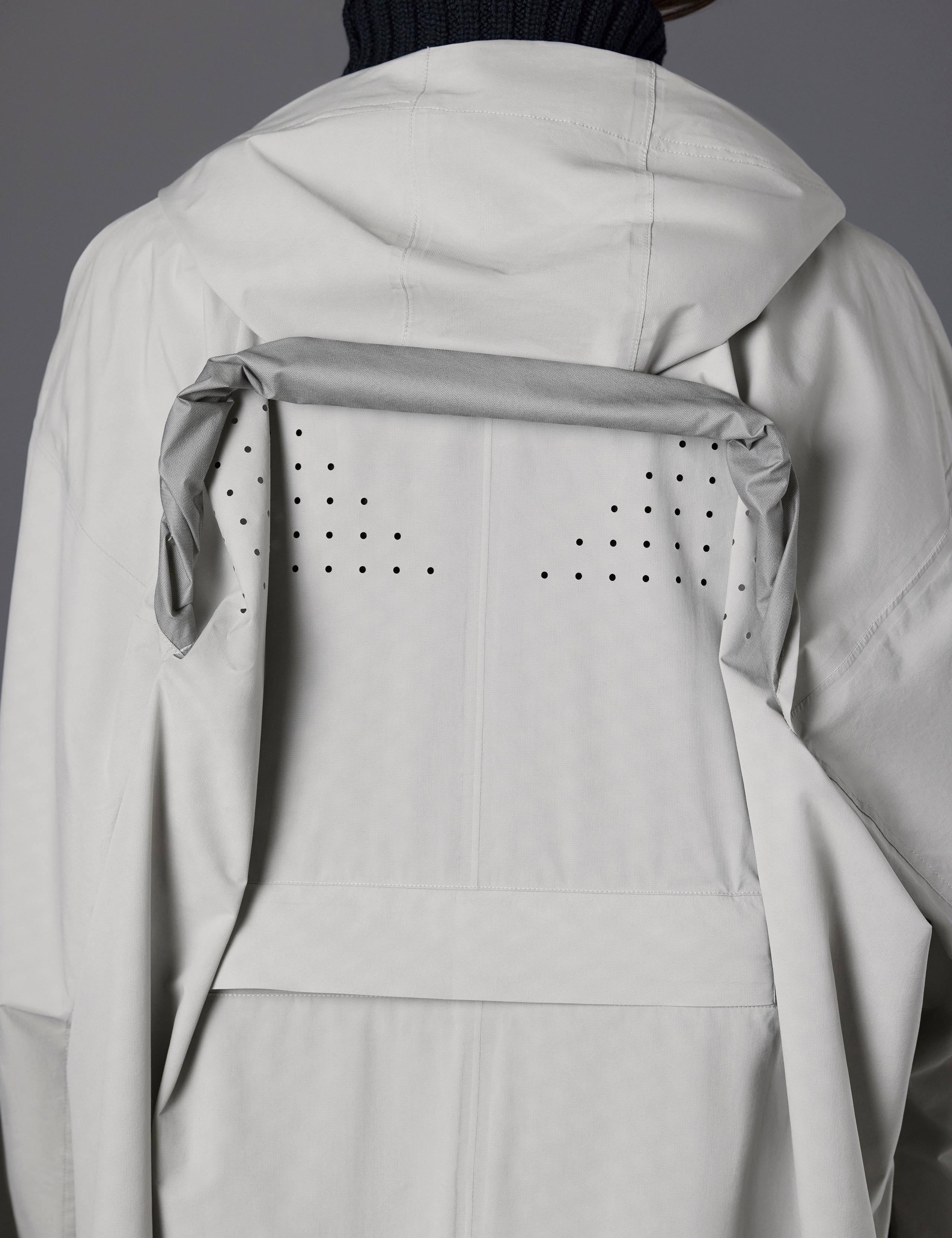 This garment’s fabric has been specially engineered to resist harsh, whipping winds.